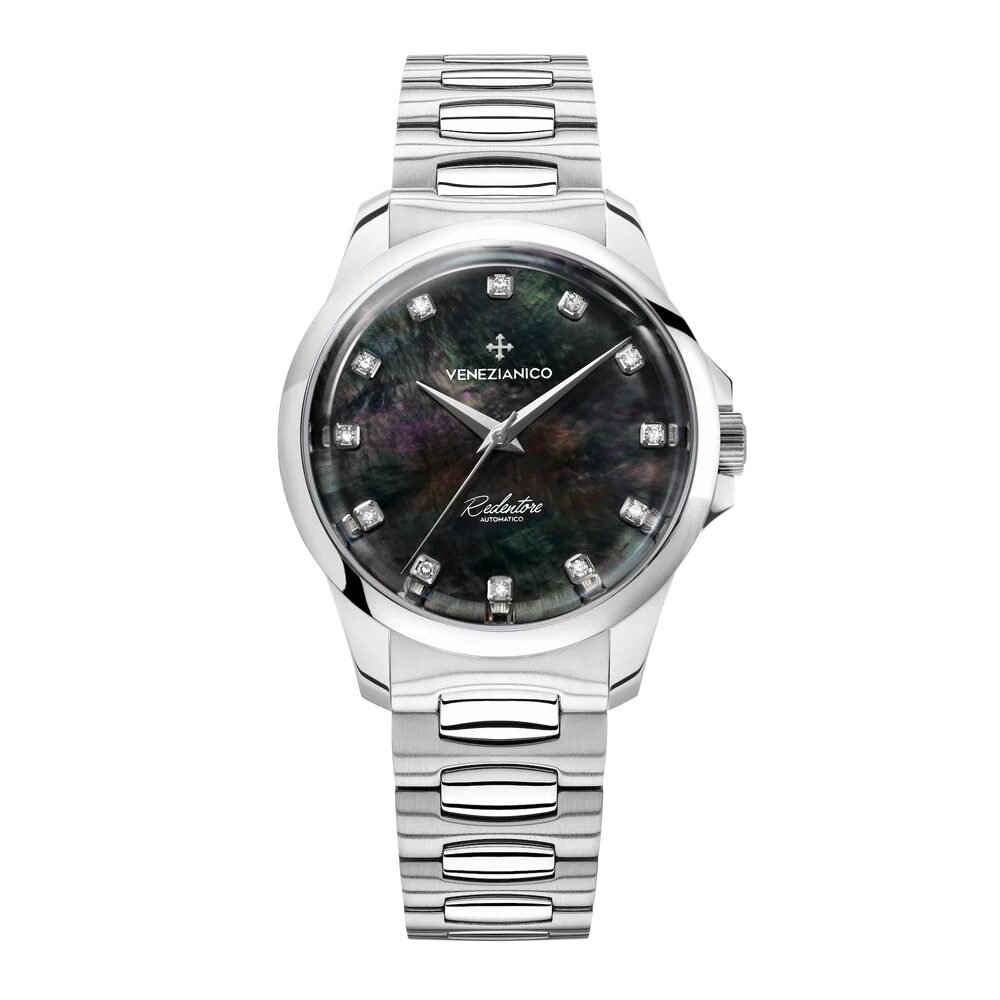Orologio elegante dedicato al mondo femminile, impreziosito da 12 diamanti e quadrante madreperla. Mantiene le linee pure e contemporanee della variante classica, ritenendo al contempo la qualità della meccanica. È accompagnato dal bracciale Canova in acciaio, che ne arricchisce il disegno grazie all’alternarsi di finiture lucide e satinate.
